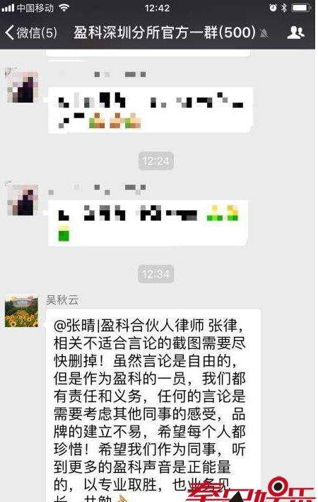 而今天被扒的这位女律师名叫张晴(就叫她张律师好了),据说是北大毕业的盈科律师事务所合伙人。