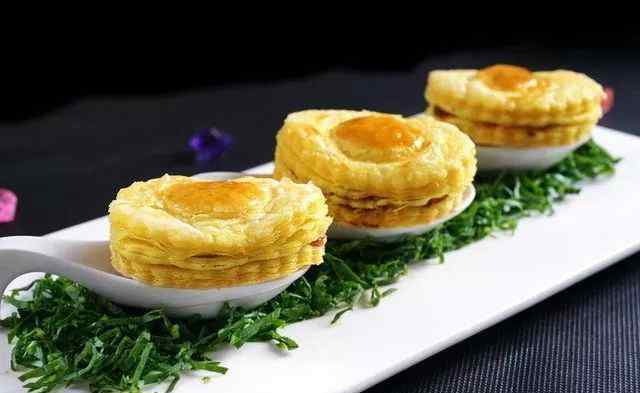 鲍鱼酥以鲍鱼粒面为主,竹笋、马蹄粒为辅。形鲍鱼,色泽金黄,馅脆。营养丰富。
