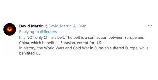 “这不仅仅是中国的‘一带一路’。它连接了欧洲和中国,惠及欧亚,除了美国。历史上,世界大战和冷战让欧洲受苦,却让美国受益。”