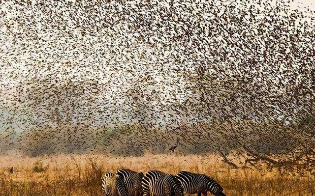 虽然红嘴奎利亚雀与大象看似没有什么关系,但是自从2013年,著名的旅行摄影师Antero Topp在非洲肯尼亚拍到了鸟群攻击非洲象开始,科学家们发现,成群的红嘴奎利亚雀不但会攻击大象,还会攻击其他的食草动物。这到底是为什么呢?原因有两点: