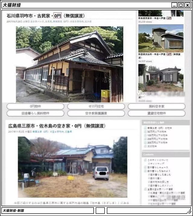 于是不少地方出台了一系列政策吸引潜在买家,包括房屋免费送和巨额装修补贴等等,一些地区甚至设立了“空房银行”( “空き家银行”),由市政府专门运营,上面挂着大量被遗弃的房屋。