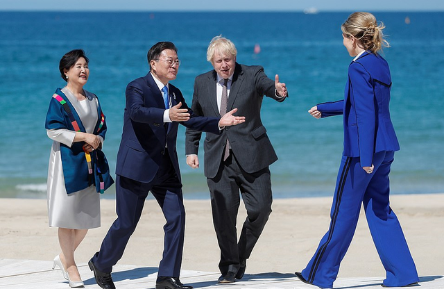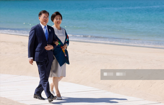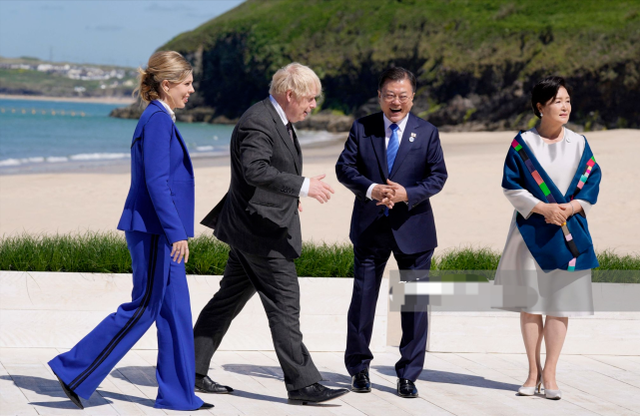 韩国第一夫人金正淑和英国新第一夫人凯莉首次同框,年龄上的巨大差别,而两位第一夫人截然不同的风格,成了沙滩上一道亮丽的风景线。金正淑也算是G7峰会的老嘉宾了,她那不张扬的风格,总是让她的东方气质完美展现出来。