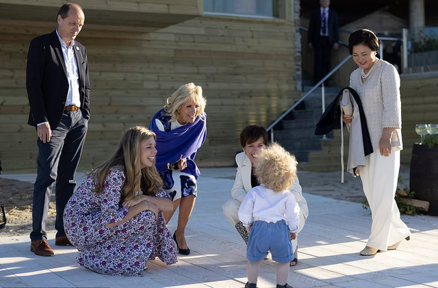 在G7峰会第一夫人们中,只有日本第一夫人菅真理子和韩国第一夫人金正淑来自于亚洲,而日韩两位夫人的穿衣风格和其他第一夫人们完全不同,走的都是非常温婉的路线。
