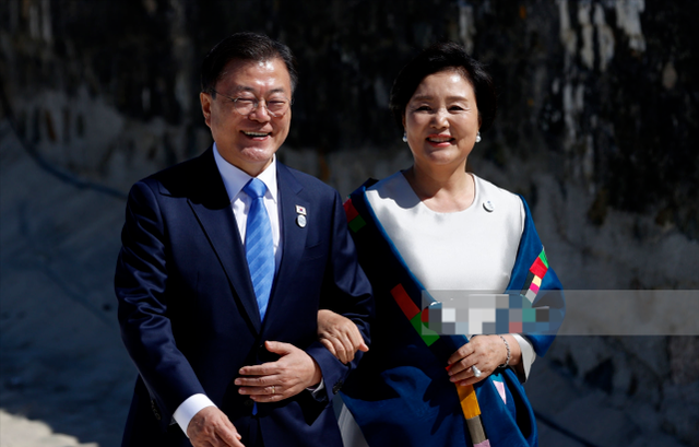 G7峰会韩日第一夫人比拼东方美!金正淑银色缎面裙赢了,温婉优雅
