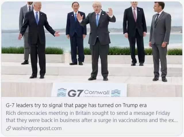 《华盛顿邮报》指出,G7集团的合作曾在特朗普执政4年间“分崩离析”,在峰会开幕当天,G7领导人都在尽最大努力表明,他们已经翻过了“特朗普时代”。