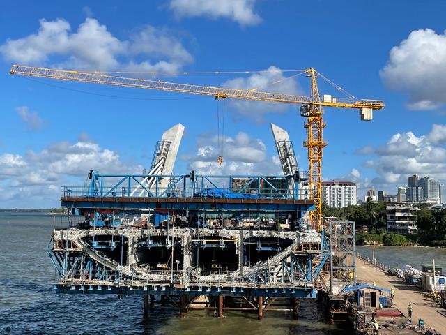 凭借着轻载高速、重载低速的技术,中联重科TC7013-10E塔机稳定、高效地完成了新塞兰德跨海大桥桥墩的每一次吊装。2021年,大桥中塔柱塔顶合龙段混凝土顺利浇筑完成,至此,五个主墩塔柱全部封顶。这预示着中联重科两台塔机圆满完成了主要的桥墩吊装任务,为大桥今年建成通车奠定了坚实基础。