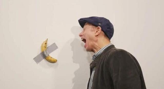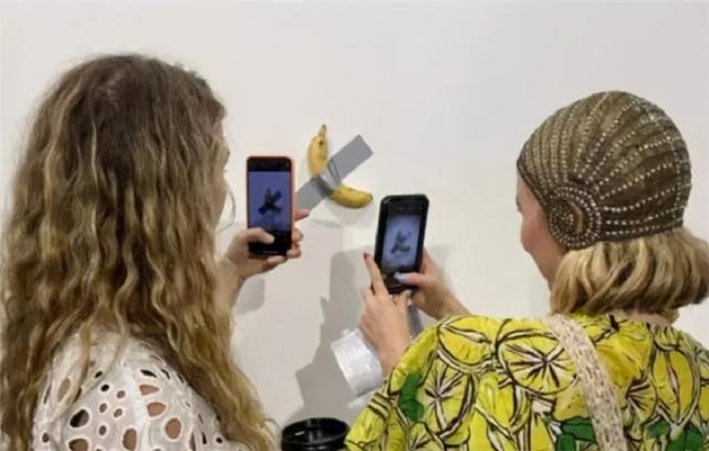 当然更多的人则开始讨论,纷纷猜测起艺术家究竟想通过这根香蕉表达什么。后来还有一位来自国外的富商以85万天价,将这根被贴在墙上的香蕉买了下来。