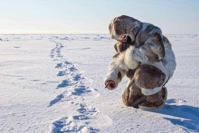 对于这些晒太阳的海豹,爱斯基摩人的做法和北极熊也是一样的,披上伪装色缓慢靠近。
