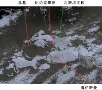 马基和比约克隆德的上方,躺着博伊斯曼,他双手置于胸前,上半身被倒塌的帐篷遮盖,头部也遭到过猛烈袭击。