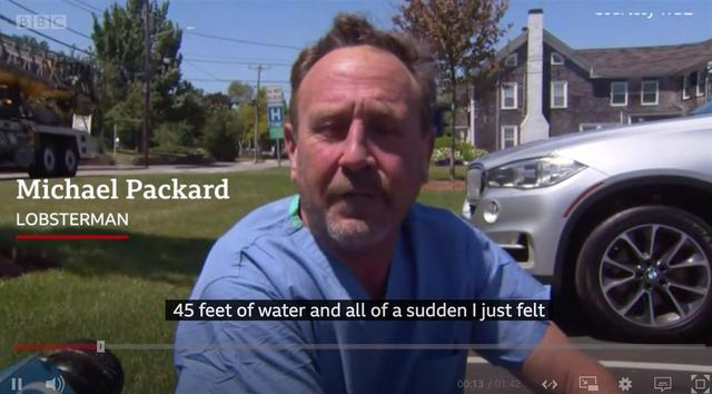 迈克尔·帕卡德今年56岁,他从事潜水这行已经超过40年,是名经验丰富的潜水员。当地时间周五,他正在马萨诸塞州普罗文斯敦的海岸线潜水,大概潜到45英尺的时候,他感觉到巨大的撞击,有什么东西撞了他。他眼前顿时一片漆黑。
