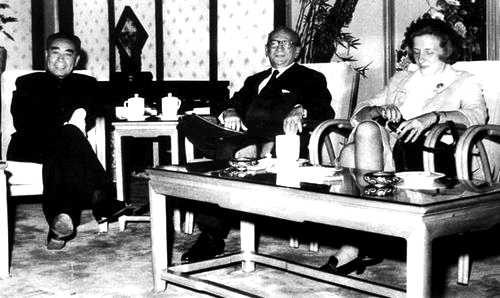 1963年10月,周恩来会见戴高乐总统代表、法国前总理富尔(中)。