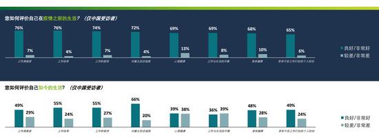 疫情之前,76%的中国女性将工作满意度评定为“良好”;如今仅有49%的受访者持这一态度。女性的工作与生活平衡亦受到影响。疫情之前,69%的受访者表示她们能够良好或非常好地平衡工作与生活;如今这一比例已降至36%。女性的身心健康也在疫情期间受到了负面影响。疫情之前,69%的中国女性将她们的心理健康评定为良好或非常好;而如今仅有36%的受访者持这一态度。