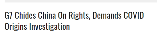 七国集团在公报中写道:“我们将推动我们的价值观,包括呼吁中国尊重人权,特别是在所谓的‘新疆问题’和所谓的其他‘中国问题’方面。”七国集团还在公报中呼吁世界卫生组织召开一个透明的、由专家主导的“新冠病毒二级起源研究小组”,调查毫无根据的“中国武汉实验室可能泄漏新冠病毒的行为”。