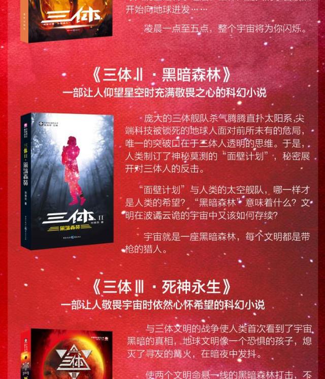 再借着世界读书日,向没有看过《三体》的朋友们推荐这套书,《三体》一共分为《地球往事》、《黑暗森林》、《死神永生》三部。