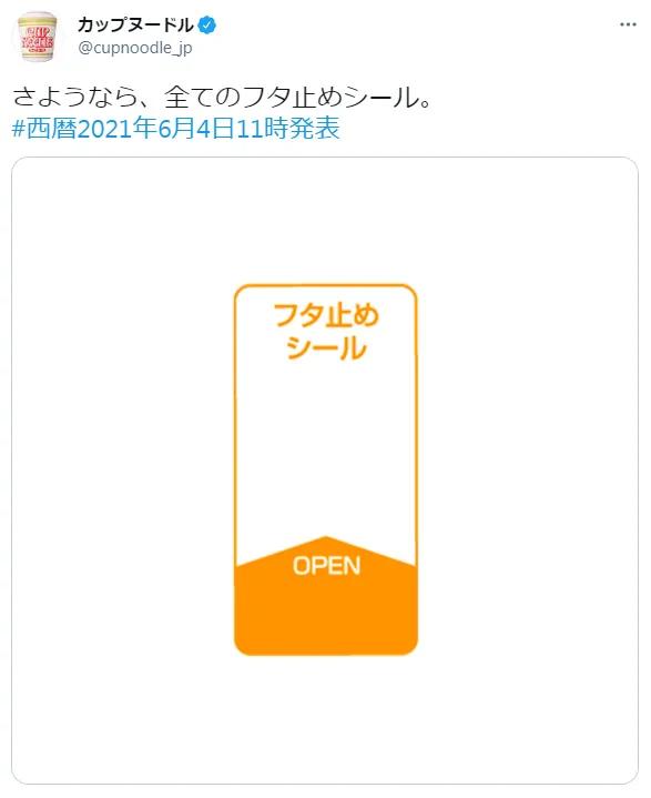 6月3号日本知名泡面品牌日清公司在Twitter发文:「再见了,所有杯面贴纸」
