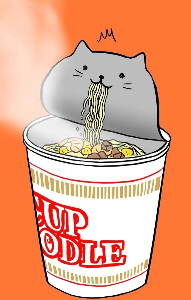 还有网友手绘了一副泡面时的场景:每泡一杯面,都有一只小猫咪在杯中大汗淋漓。