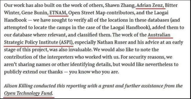 另外,被BuzzFeed感谢的机构也都不是“无名之辈”,比如“澳大利亚战略政策研究所”(ASPI)。中国外交部发言人华春莹曾在2020年6月指出,有澳大利亚方面人士撰文披露,这个机构长期接受来自美国政府和军火商的经费支持,热衷于炮制和炒作各种反华议题,意识形态色彩非常浓厚,实际上是反华势力的“急先锋”,学术信誉受到严重质疑。