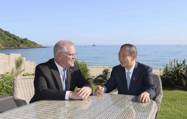 莫里森和菅义伟在G7会面 (图自日本时报)