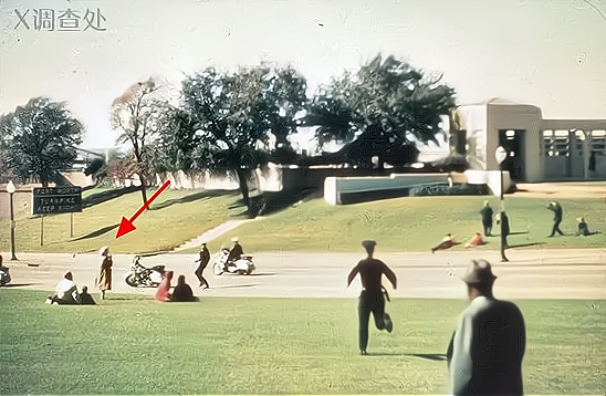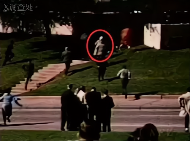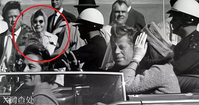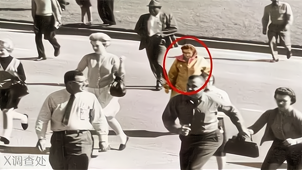 肯尼迪总统遇刺现场有一位神秘女子。她带着墨镜和头巾,与周围人群的穿着打扮都很不一样。
