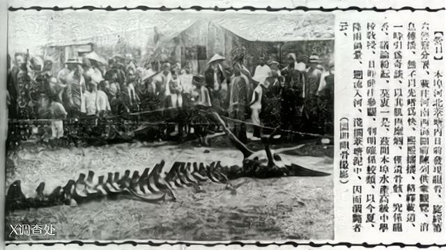 这是我们都听过的一件事。大致是说在1934年的夏天,辽宁营口这里连续下了好几天大暴雨。然后当地村民在辽河边的芦苇丛里发现了一只怪物,人们认为那是一条龙。后来这条龙被晒死了,便被营口的警察给运走拿去展览。因为只剩一副骨架,就把骨架拿来展览。当时的报纸还做了报道,很多当年的目击者后来也说确有此事。可是,那真的是龙吗?现在我们还无法确定。