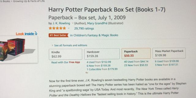 日用品我们就挑手机壳吧,Iphone11的手机壳,淘宝上大概是20~30块钱的比较多,书的价格,我们就挑哈利波特全集,美国亚马逊换算过之后的价格是93块5,还是当当呢是271块钱.
