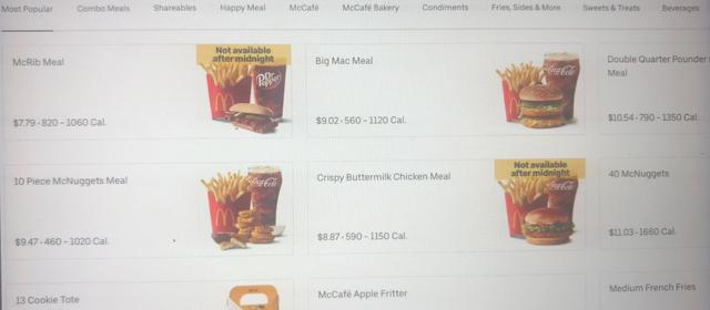 接下来我们比较快餐厅和买菜自己做,麦当劳里面我挑的是巨无霸套餐,洛杉矶某处含税价格大概是十美元,乘以1.69的折算比例之后呢就是16块9。那国内的麦当劳巨无霸套餐是32块钱。另外提一句,美国快餐厅和国内有一个不同之处,就是它的饮料可以无限续杯