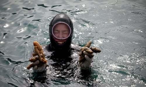 这里每年海水温度升高的速度,比全球平均高出2.6倍。这改变了海洋,也使海女的未来产生不确定性。