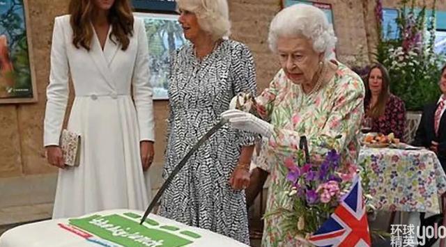 G7峰会上,第一夫人们的时尚大比拼相当激烈,而女王用一套简单的绿色系印花裙轻松赢下这一场。在之后的峰会活动上,女王坚持用礼仪剑切蛋糕,还说“我知道有一般的刀子,但我想用这把更不寻常的”,这画风也是有点可爱。