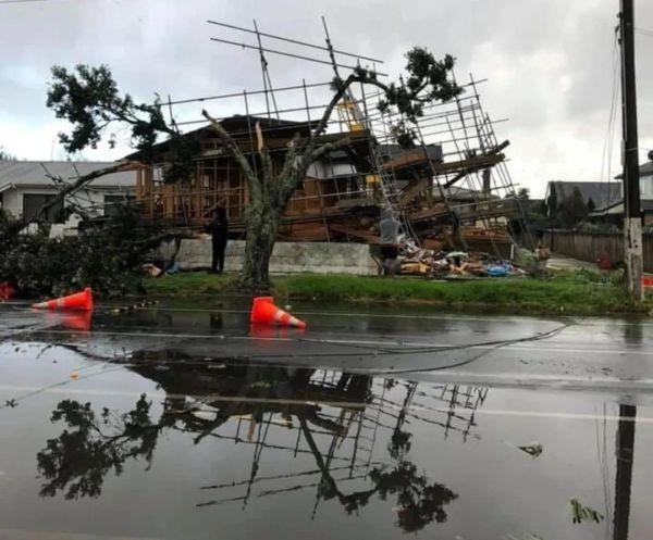 今天早上,奥克兰南区部分地区遭到猛烈龙卷风的袭击,房屋遭到严重破坏,电线被吹倒。