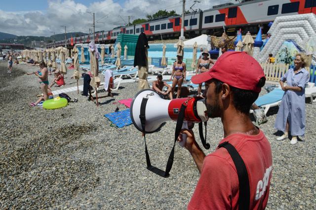 6月17日,人们在俄罗斯索契海边休闲游玩。