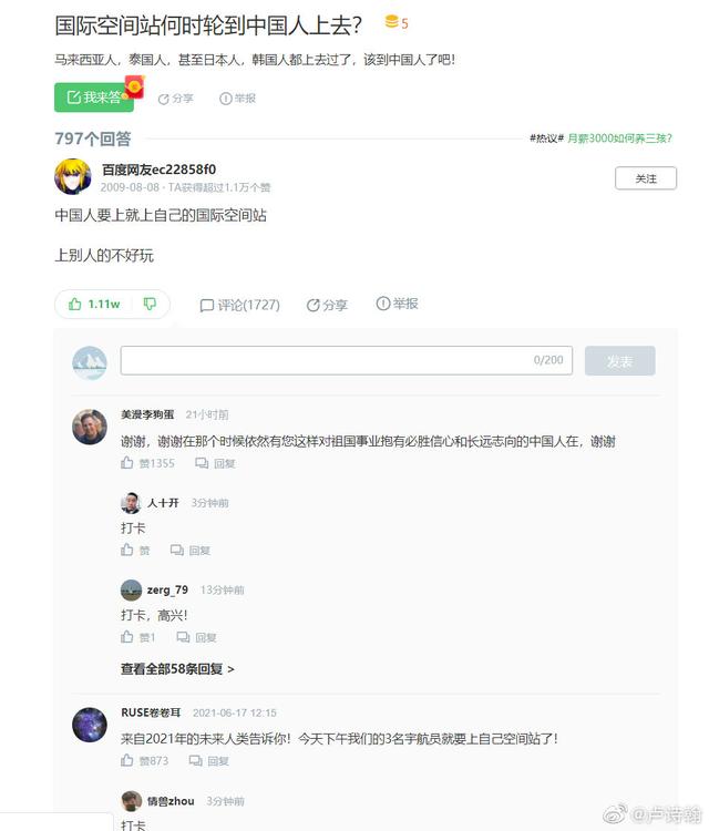 刚刚看见那个中国空间站时隔十二年网友的回复