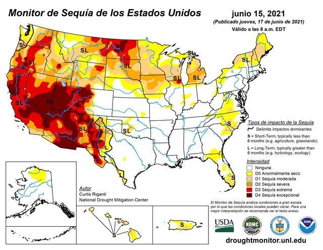 美国西部多地陷入“极度干旱”境地。(图片来自美国国家干旱中心社交媒体)