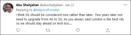 在吐槽的同时,也有网民认真地给市长萨迪克·汗提出了建议:“我认为应该现在而不是以后再考虑5G,这样数年后就不用从4G升级到5G了。正如你总说的那样,伦敦是最棒的城市,所以我们也应该在技术上保持领先......”