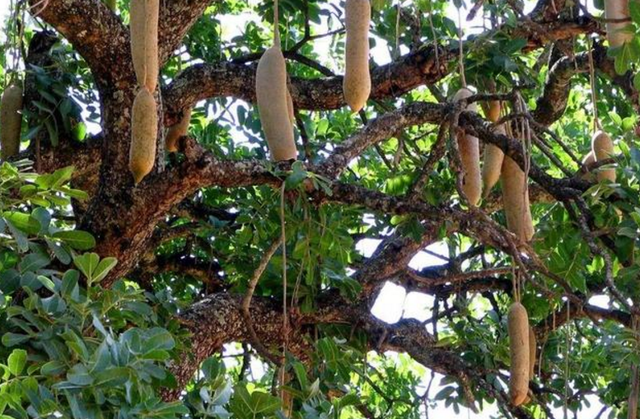 不过这个树虽然叫香肠树,但其实并不产香肠,它所产的果实和香肠的味道差别甚远,这种果实味道偏甜,且不分成熟与否。这种树还有治疗疾病的功能,在非洲,人们一旦感染上细菌或者被毒虫动物伤害,就会拿着这种果实来涂抹伤口,有时候还会之间一些疹子等皮肤疾病。有意思的是,这类果实后来被证实还能治疗糖尿病。所以,这种多功能的植物放在非洲,非洲人就不会动脑子再探索其他的可用之物了。