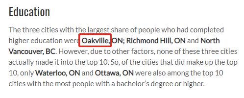 安省奥克维尔市,拥有最多接受过高等教育的人口。