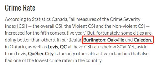 安省的伯灵顿,奥克维尔,以及Caledon,拥有着全国最低的犯罪率。