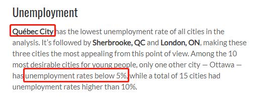 位居榜首的,居然是魁省魁北克市。首都渥太华,则排名第二。加拿大最大城市多伦多,仅排名12。温哥华才排13。华人聚集的万锦市,更是排名36。