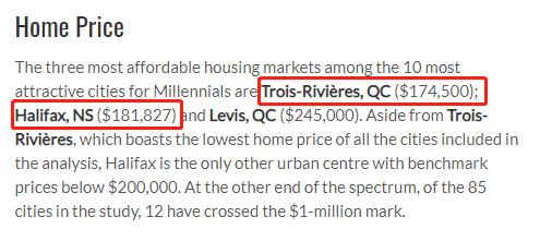 房屋价格排名中,最受欢迎的是魁省的,Trois-Rivieres市,平均房价仅174,500元。诺省的哈利法克斯,仅181,827元。