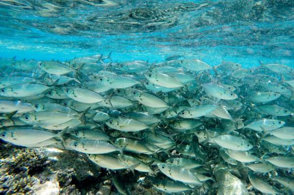 图为在南太平洋岛国纽埃的海岸浅滩中拍摄的鱼群资料照片。(新华社记者郭磊摄)