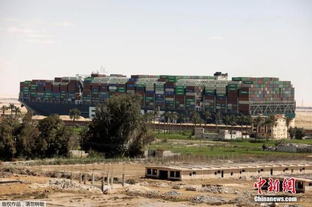 资料图:当地时间3月29日,搁浅在苏伊士运河中的重型货船脱困,运河交通逐步恢复。
