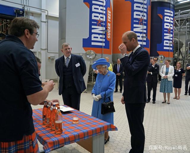 出访首日伊丽莎白女王携威廉王子抵达了苏格兰AG Barr位于Cumbernauld的饮料工厂,这一家工厂主要是以生产Irn Bru而出名,威廉王子还现场啜饮了一口。