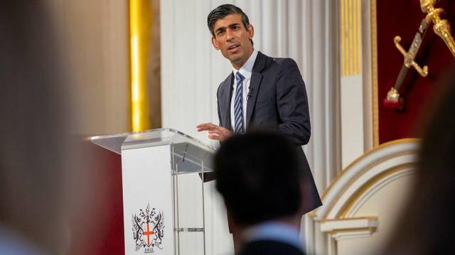 综合英国《金融时报》、《泰晤士报》、英国广播公司(BBC)消息,苏纳克在发言中称,伦敦金融城有能力为经济快速增长的中国,提供“总资产价值40亿英镑(约合357.8亿人民币)的金融服务”。他还表示,“中国与英国需要一种成熟而平衡的关系。”