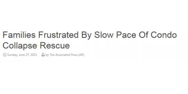 佛州州长说,救援行动之所以进展缓慢,是因为建筑本身有“司法鉴定”的价值,需要被保存好,以便后续对其倒塌起因进行调查。