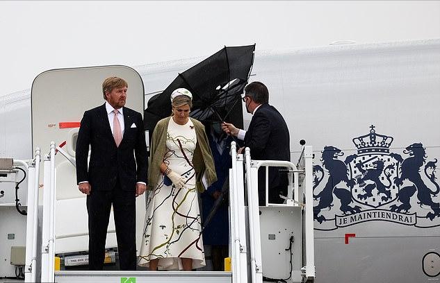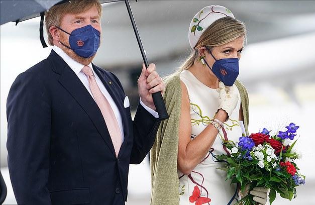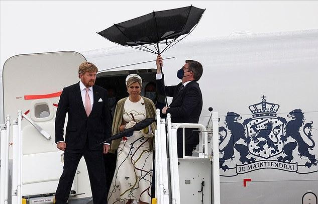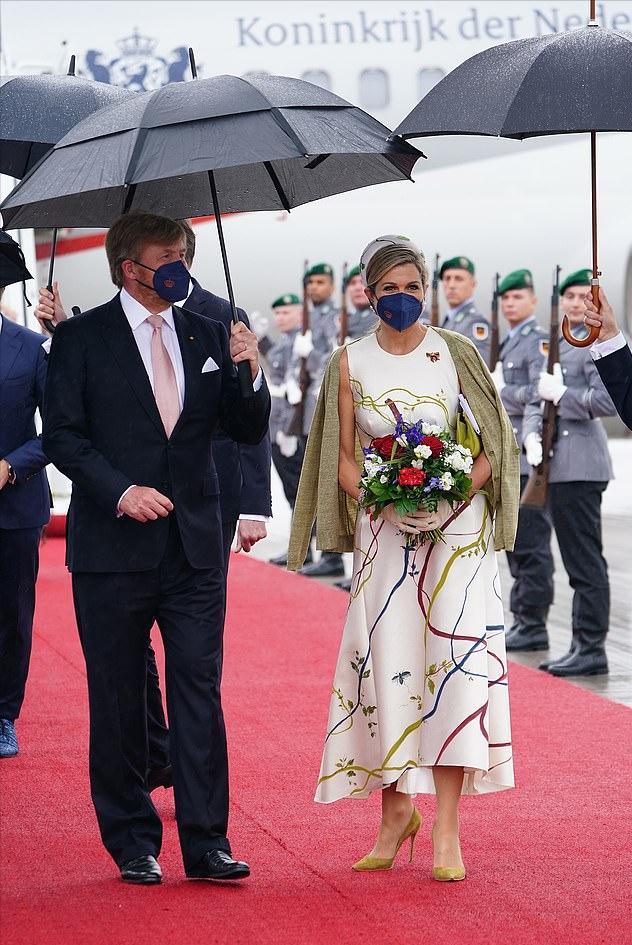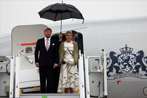 当地时间7月5日,荷兰国王和王后开始了对德国的访问,可惜天公不作美,刚刚下飞机就遇到了大雨。在这样的恶劣天气,荷兰王后的这套绝美造型似乎是受到了影响。好在马克西玛王后还比较淡定,雨伞都被吹破了,王后依然保持着最优雅的状态。
