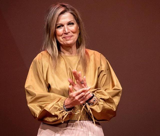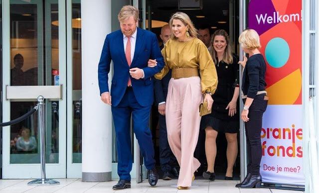 不过光从服饰的搭配来看,荷兰王后绝对是最愿意变化的。她的这套裤装造型,灯笼袖的上衣搭阔腿裤,撞色的原理用非常好,而在颜色的呼应上,荷兰王后也是很擅长。手上的包包和衣服是呼应的哦!