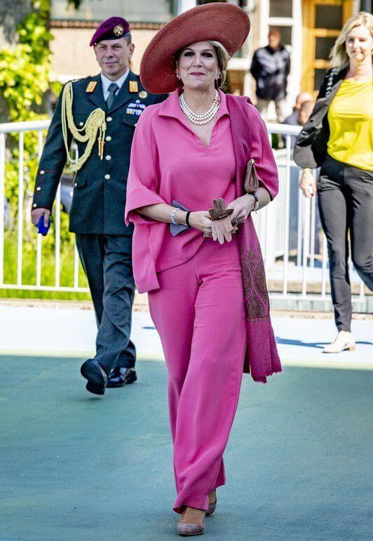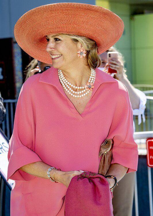 在配饰的选择上,荷兰王后更有自己的风格了。这样的粉色系列当然需要花枝招展的搭配了,花朵耳环就显得格外应景。荷兰王后胜在敢于配色和敢于用夸张的首饰。