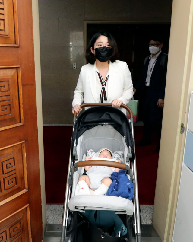 (原标题:韩国90后女议员推婴儿车上班:要求带娃进国会,引发热议)