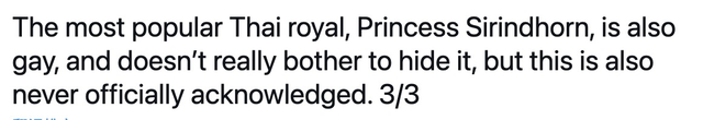 王室权威专家安德鲁称诗琳通不结婚是她喜欢同性,而且公主并不掩盖这一点。王室层面沒有回复,可是不管公主不结婚的原因是什么,一点都不危害她是一个受人尊重和拥戴的泰国公主。