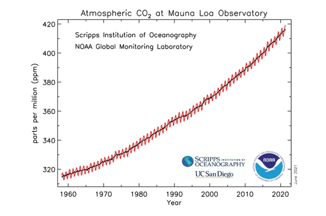 这样地球的热量就会堆积,持续推动地球的气候“失衡”,所以导致地球的变暖会更加的强,加上人类对温室气体的排放没有减弱,未来的地球变暖也会持续下去。根据2021年5月发布的二氧化碳数据显示,5月大气中二氧化碳浓度已经达到了近419ppm,所以又要突破极限值了。