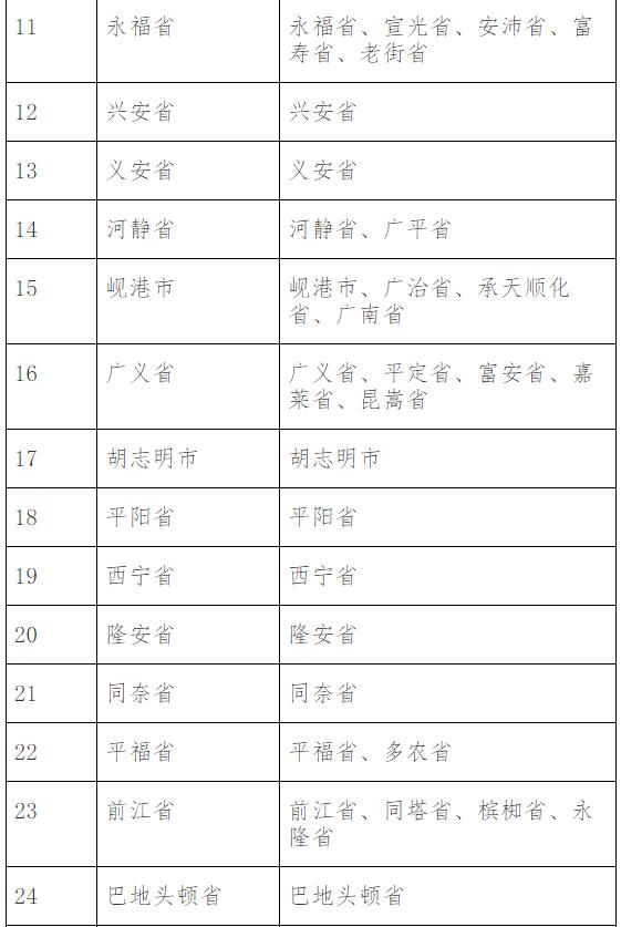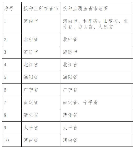 注:经与越方商定,奠边、莱州、高平、河江四省辖区内的中国公民在本省接种中国疫苗。